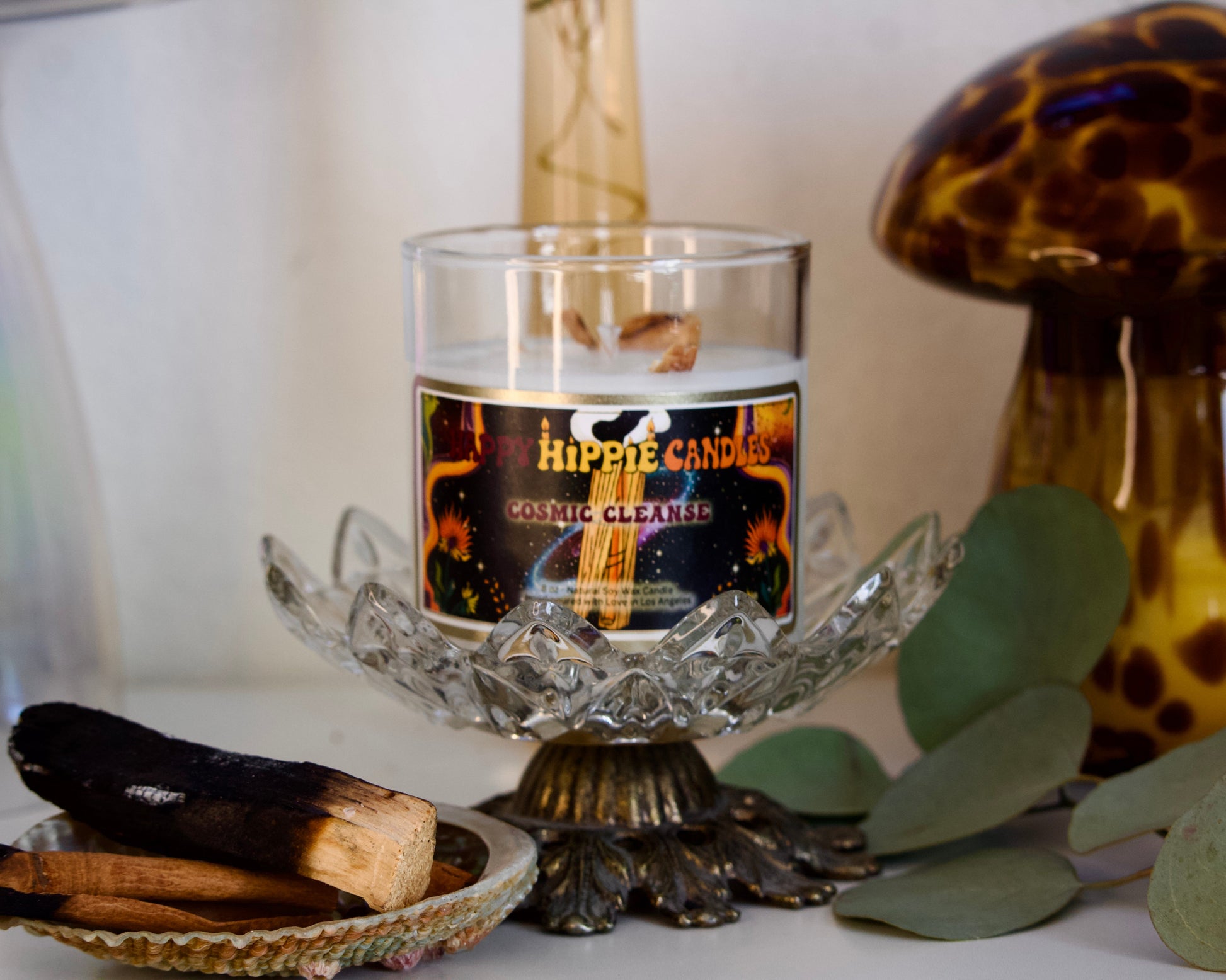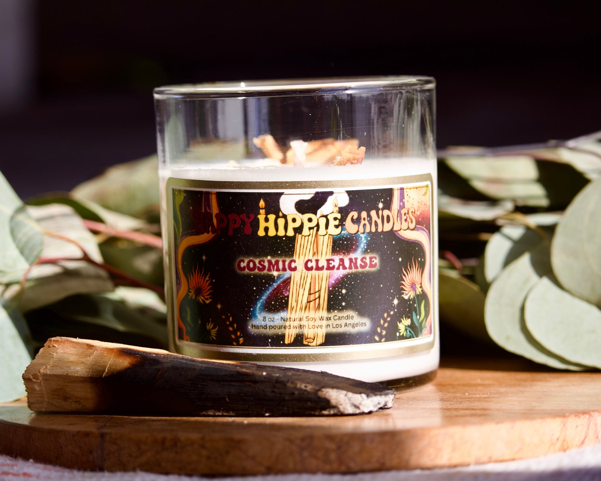 Elevate your spirit with Cosmic Cleanse—a grounding blend that clears the mind and purifies the soul. Rich palo santo and warm amber lead into earthy pine and smoky undertones, softened by hints of lemon leaf, cashmere, and sacred incense. Let this scent guide you into a space of deep meditation and cosmic harmony